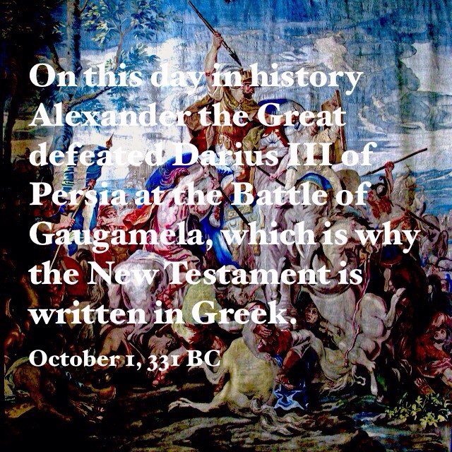On this day in history Alexander the Great defeated Darius III of Persia at the Battle of Gaugamela, which is why the New Testament is written in Greek.